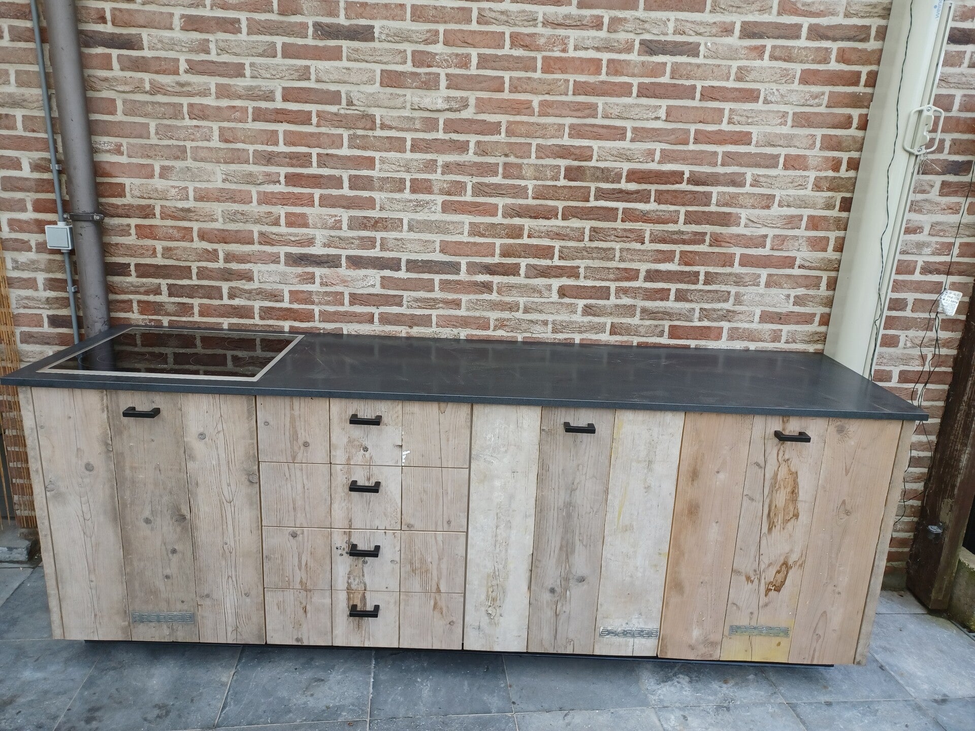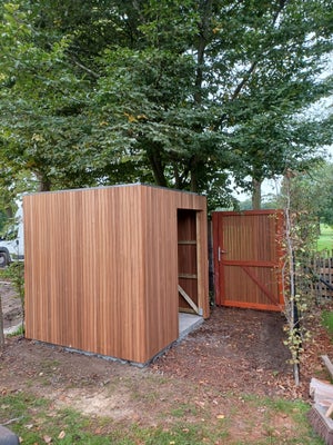 Poort in Padouk bekleed met zwarte thermowood grenen